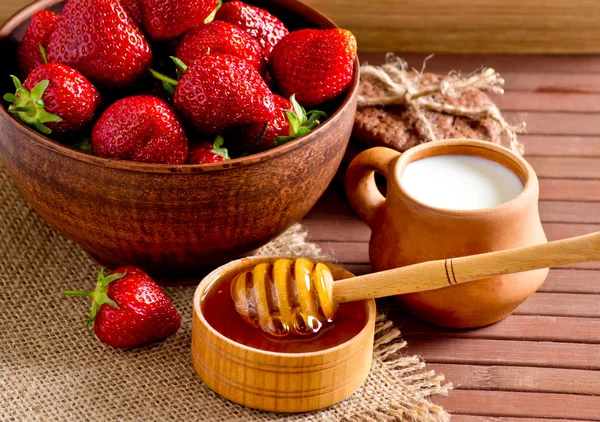 Rửa sạch dâu tây, mâm xôi và cắt nhỏ chuối. Cho tất cả vào máy xay cùng sữa hạnh nhân và mật ong. Xay nhuyễn đến khi mịn và đồng